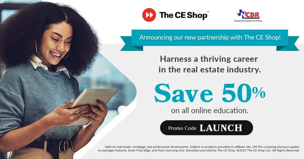NCBR is proud to announce a new partnership with The CE Shop, the leader in online real estate education. During launch week save 50% on all online education. With the CE Shop you get state-approved courses that you can complete wherever you are and whenever you want with access to curriculum and technical support 7 days a week.